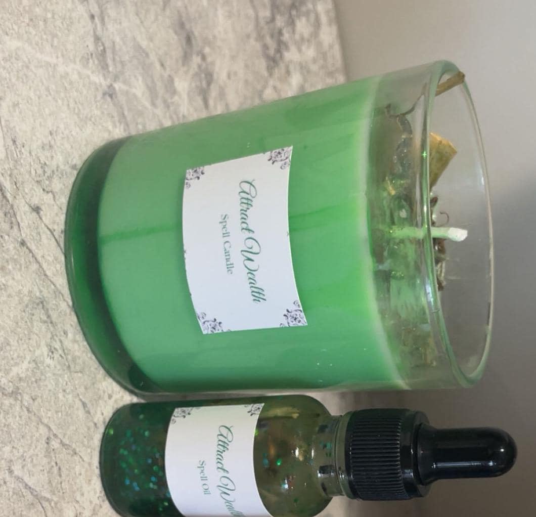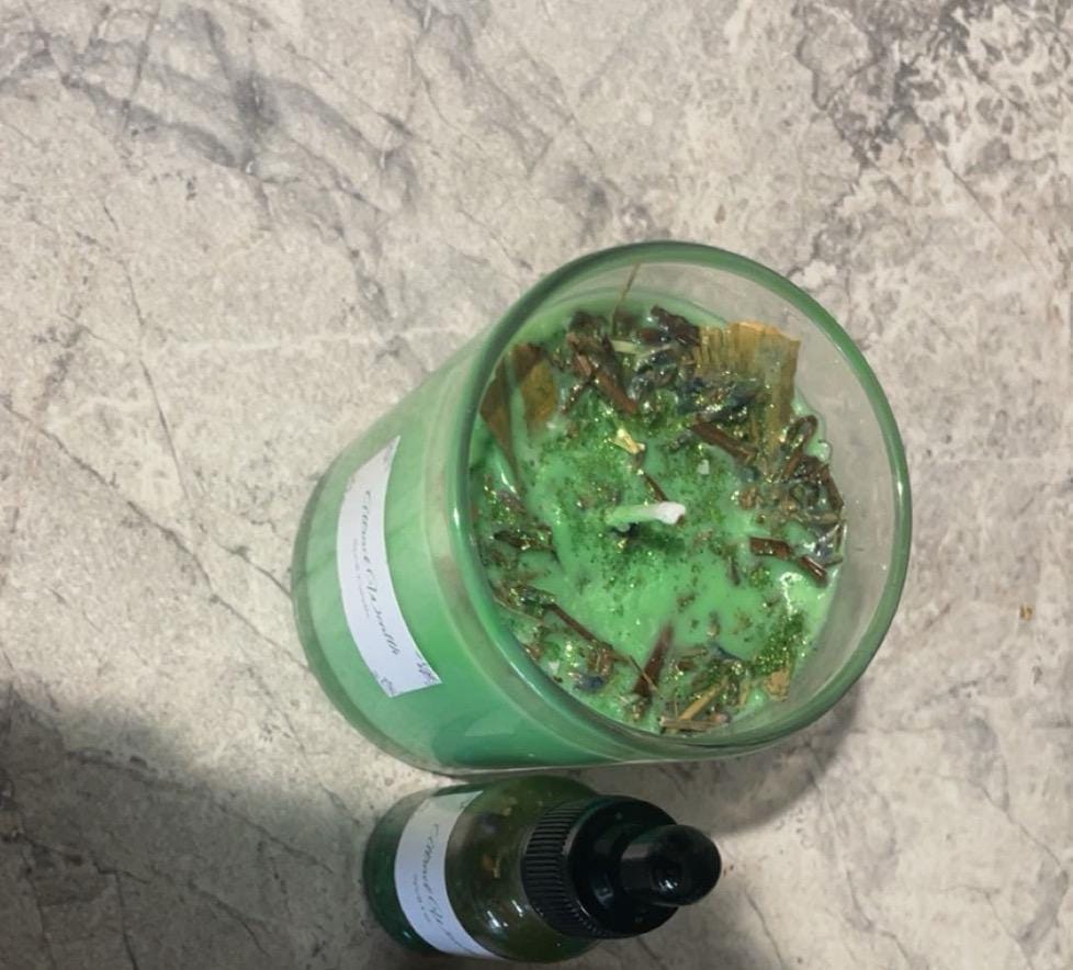 Invite wealth, luck, and prosperity into your life with this handcrafted money spell candle. Designed with intention and spiritual symbolism, this candle brings in wealth, new financial opportunities, luck, and success.